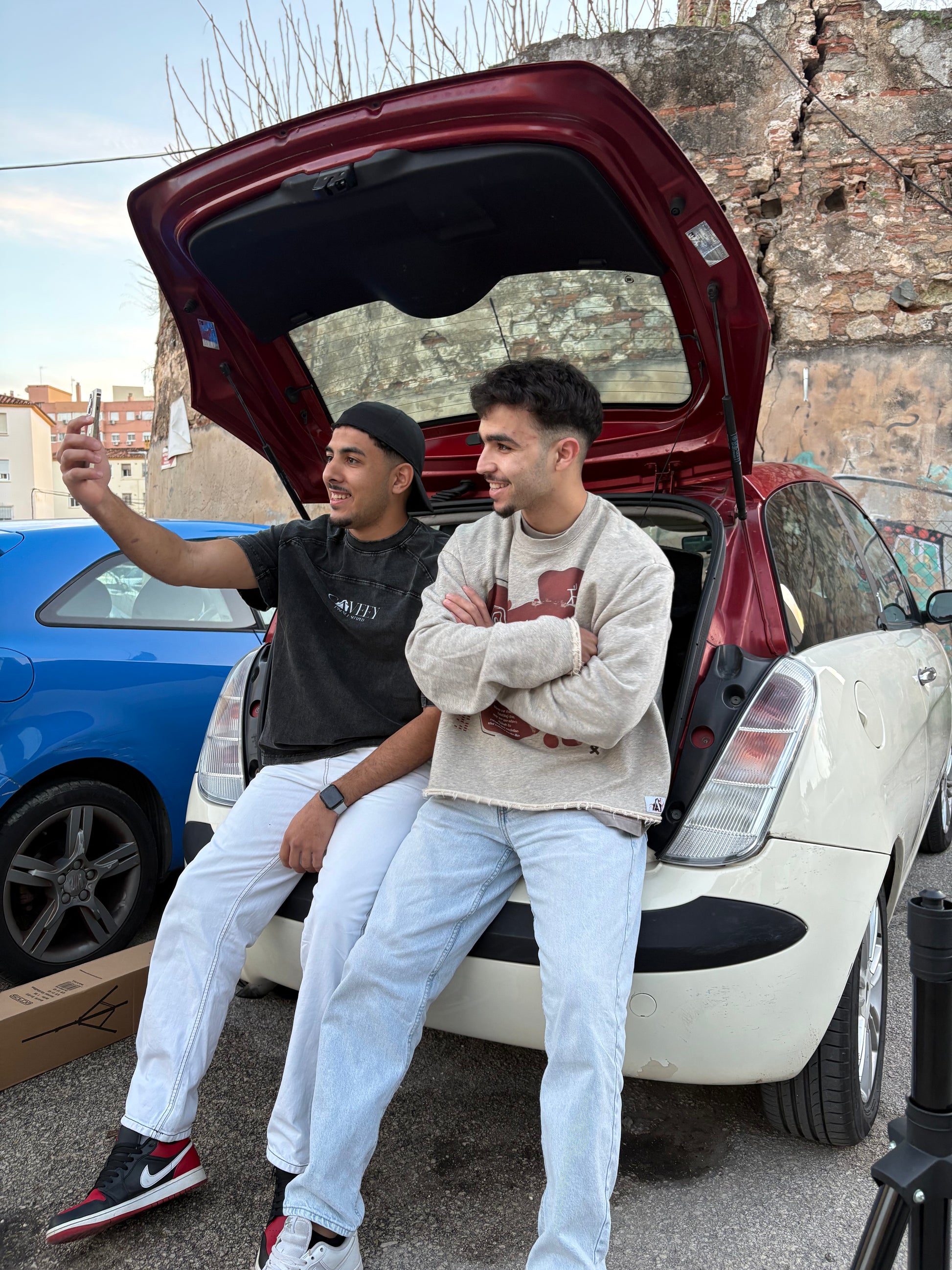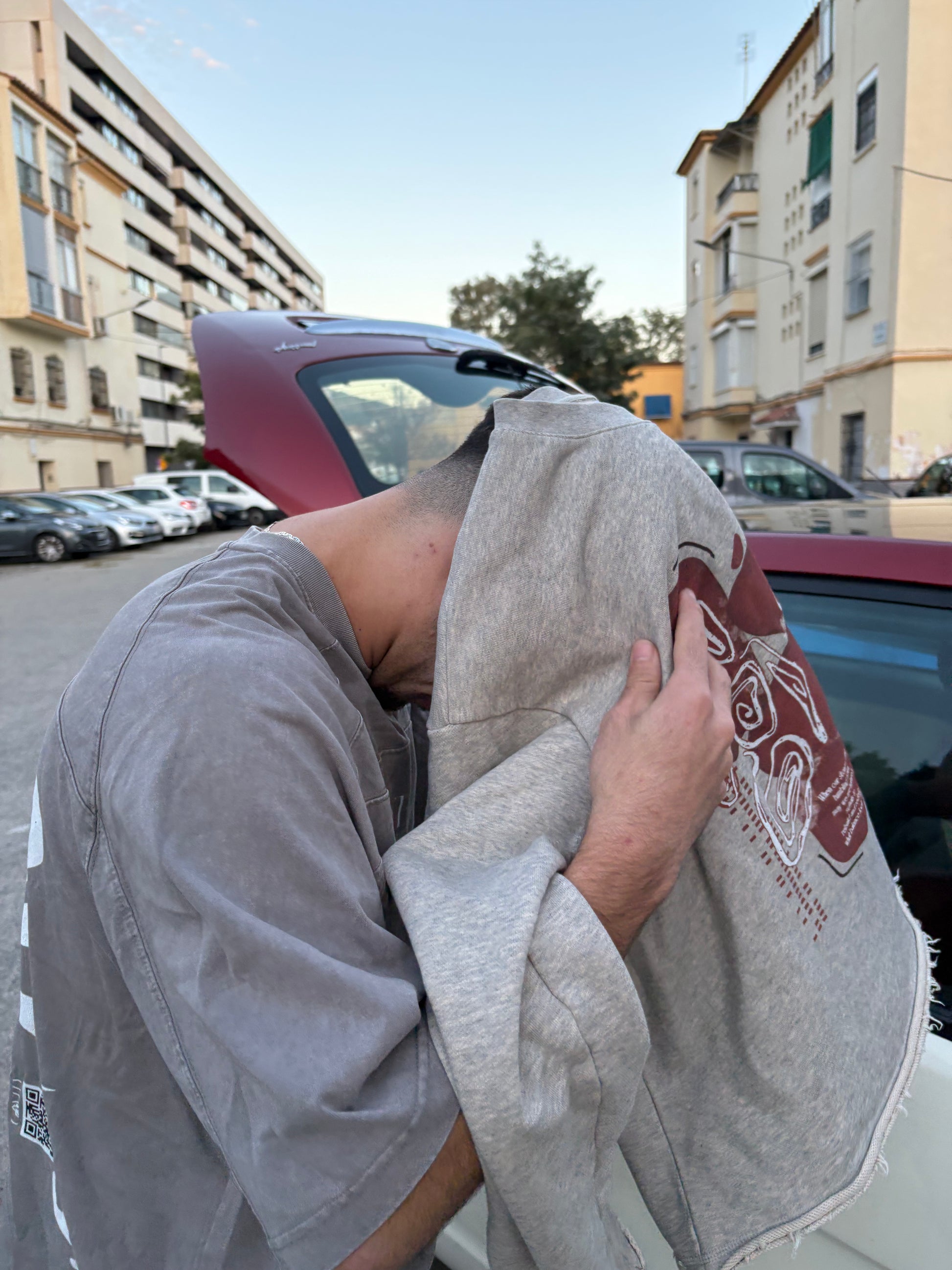 Añade una pieza de arte urbano a tu rotación diaria. Esta sudadera de corte oversize en tono taupe (topo/arena) presenta un diseño gráfico exclusivo que juega con la asimetría, el arte abstracto y la tipografía multilingüe. El estampado frontal en rojo burdeos incluye la palabra "Equilibrio" en árabe e inglés, acompañada de una cita inspiradora sobre la resiliencia.